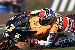 After his retirement, he is still present in the MotoGP paddock and at the Repsol Honda squad along with Mick Doohan at special events of the team, such as Repsol's 20 and 25 years of collaboration with the team in 2014 and 2019.[63][64]