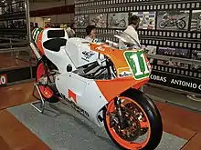 Initially he retired on the opening round in Malaysia and had only finished fourth in Indonesia whilst teammate Mick Doohan won the race. However, at the Japanese race, he took his first pole of the season on Saturday and finished second on Sunday.[13] In Spain however, he recorded his second retirement of the year. Initially taking the lead of the race from polesitter and teammate Doohan, as well as Luca Cadalora (who had a better start and thus led into turn one), Crivillé pulled a gap after a short battle with Cadalora, whose tyres began to fade. Crivillé then led for much of the race but Doohan was closing in at the final laps. On the last lap, spectators who already thought the race had ended, invaded the track around turn nine (the "Curva Àngel Nieto"), distracting Crivillé enough to allow Doohan to get back right on his tail going into the last couple of corners. Going into the last hairpin before the start-finish straight, Doohan went to the inside, going side-by-side with Crivillé. The pair did not touch, but Crivillé lost the rear whilst trying to accelerate, highsiding out of contention on the very last corner of the race, allowing Doohan to win the race as a result.[14][15][16]