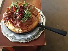 Äggakaka (English: Egg cake) is a traditional Scanian dish that is similar to kolbullar or oven pancake (ugnspankaka), that is served with fried slices of pork belly and lingon berries.[1][2] It used to be made for farmworkers as it was easy to wrap up and eat out on the fields.[3]