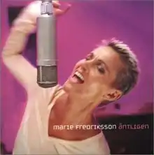 "Äntligen" (English: "Finally") is a pop rock song by Swedish singer-songwriter Marie Fredriksson, released on 20 March 2000 by EMI as the lead single from her first greatest hits compilation album, Äntligen – Marie Fredrikssons bästa 1984–2000.[1] The track was written and produced by Fredriksson alongside her husband Mikael Bolyos,[2] and recorded at the couple's home studio in Djursholm.[3][4][5] The song was a minor hit in her home country upon release, peaking at number 34 and spending eight weeks on the Swedish Singles Chart.[6] A remixed version of the song, titled "Solen gick ner över stan" ("The Sun Went Down over the City"), appeared as the b-side; an edited version of this remix also appeared as a bonus track on the parent compilation.[4]