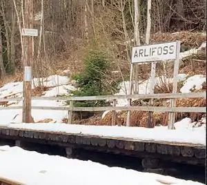 Designed by Thorvald Astrup it opened in 1914 as Aarlifoss. It got the current name in April 1924, but downgraded to a stop on 1 March 1924. On 12 July 1982 it was moved 34 meters and the station building razed. It was closed along with the railway on 1 January 1991.[1]