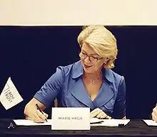 Åslaug Marie Haga (born 21 October 1959) is Norwegian diplomat, politician and international civil servant. She has been board chair for various organizations, including the Norwegian Institute for Nature Research (NINA) and the Peace Research Institute in Oslo (PRIO). Haga has published three books: two on Norwegian politics and one novel.