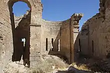 Çanlı Kilise, meaning "bell church" or "church with a bell", is a Byzantine-era ruin site located about 15 km southeast of the city of Aksaray in Turkey.[1]:xix,6 It consists of a large rock-cut settlement surrounding a prominent masonry church which lends its name to the whole site.[1]:6 A rare masonry church from the historical region of Cappadocia, the church is one of the best examples of Byzantine masonry architecture in central Anatolia and is frequently cited in textbooks on Byzantine architecture.[1]:17 Surrounding the church is a series of rock-carved houses carved into the south side of a hill (locally called Manastırtepe, or "monastery hill") over a distance of about one kilometer.[1]:7[2]:302 Across the broad valley to the south, the peaks of Hasan Dağı are visible.[1]:7 Çanlı Kilise is accessible by a road winding its way from Akhisar, 4 km to the west on the plain below, up through a rugged hilly area en route to Çeltek, which is 6 km north of Çanlı Kilise on the same road.[1]:7