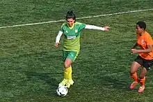 In the 2018–19 league season, she transferred to Beşiktaş J.K.[7] She enjoyed the champion title of her team in the 2018–19 season.[1] She took part at the 2019–20 UEFA Women's Champions League – Group 9 matches.[8][9][10] She played in one matc of the 2021–22 UEFA Women's Champions League qualifying rounds.[11] In the 2022–23 Super League season, she transferred to Fatih Karagümrük S.K.[1]