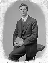 There were occasions when de Valera seriously contemplated the religious life like his half-brother, Fr. Thomas Wheelwright, but ultimately he did not pursue this vocation. As late as 1906, when he was 24 years old, he approached the President of Clonliffe Seminary in Dublin for advice on his vocation.[22] De Valera was throughout his life portrayed as a deeply religious man, and in death asked to be buried in a religious habit. His biographer, Tim Pat Coogan, speculated that questions surrounding de Valera's legitimacy may have been a deciding factor in his not entering religious life. Being illegitimate would have ordinarily been a bar to receiving priestly orders as a secular priest, but not to becoming a priest or religious in some religious orders.[23]