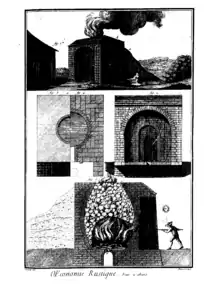 At the beginning of the 18th century permanent mortar ovens appeared in Ecouché, operated by professional owners. These ovoid ovens, without chimneys, were manually dug out of the rock in batteries of five or six ovens, beside the quarry. They were equipped with a mouth for loading, about 1.20 metres (4 ft)in diameter, and with another mouth for unloading of between 0.40 and 0.70 metres (1 ft 6 inches and 2 ft. 4 inches) in diameter. A statue of the Virgin Mary placed in a niche looked over each batch of ovens.