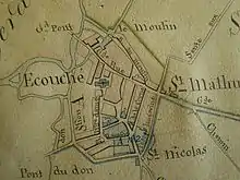 Écouché (French pronunciation: [ekuʃe] ) is a former commune in the Orne department in north-western France.[2] On 1 January 2016, it was merged into the new commune of Écouché-les-Vallées.[3]