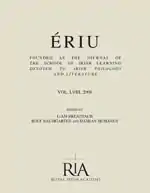 Ériu is an academic journal of Irish language studies. It was established in 1904 as the journal of the School of Irish Learning in Dublin.[1] When the school was incorporated into the Royal Irish Academy in 1926, the academy continued publication of the journal, in the same format and with the same title.[1] Originally, the journal was published in two parts annually, together making a volume, but parts slipped further apart after Volume III.[1] Articles are written in either Irish or English.