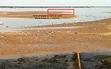 Soon after it formed the island, lying at the boundary between the estuary and the Atlantic Ocean, was measured at 11 acres (4.5 ha) above high tide level and some 240 acres (97 ha) in the intertidal zone.[1] Initially unclaimed by any local municipality the island came to be known as Île Sans Nom but was also named L'Île Mystérieuse by locals after the 1875 Jules Verne novel.[3][1][2] It was considered possible at the time that the island would disappear as quickly as it had appeared, though some experts considered it could become permanent.[1]