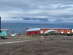 The Alfred Faure research station (Base Alfred-Faure) is located at the eastern end of Île de la Possession, at an elevation of 143 m above Baie Marin (Port Alfred). It comprises about 12 main buildings and supports up to about 45 visiting personnel. It is named after a leader of the base in the 1960s. A 1.6 km road and aerial cableway connect the base to the sea, where supplies are brought by the vessel Marion Dufresne. The daily temperature at the site varies annually from an average high of 7.9°C to an average low of 2.7°C.[2]