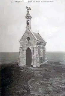 In 1725, the rector wrote: "There is a chapel under the invocation of Saint Michael three-quarters of a league from town, built on a rock out in the sea, whose passage is prevented by the tide, forcing the Bernardine monks to say Mass every year on the Feast of Saint Michael on the beach in a rocky area covered with a sail. This puts the Holy Sacrifice of the Mass in great danger of an accident. The monseigneur forbade them from celebrating Mass in the sail, however, it has always been continued in the same place by the religious."[3]