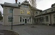 The station building was built in 1879, mainly following the drawings of architect Adolf W. Edelsvärd (1824–1919). The building was constructed entirely in wood. English botanist William Dallimore (1871–1959) visited the station in 1929 and noted that the "best birch panelling" was used.[1] [2] [3]