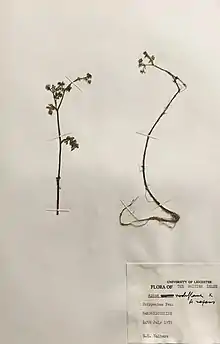 The original material was cultivated for a number of years in Cambridge University Botanic Garden, but this stock is no longer extant, nor was material placed in Cambridge University Herbarium (CGE).[4] However, the original collections made by Walters are present as dried specimens in the University of Leicester Herbarium (LTR), presumably retained after being sent to then herbarium director Tom Tutin for determination.