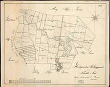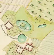 The area where Ny Øbjerggaard stands today was listed in records from 1682 (Markbogen and Græsningsbogen) as Øebiergs aggere ('Øbjerg Field'). It belonged to Køng Gårde, a small hamlet of just three farms owned by the Crown. The bailiff (herredsfoged) of Hammer Herred, Jacob Gad, resided in one of the three farms. The name Øbjerg (lit. "Island Hill") referred to Øbjerg, a small hill in the otherwise flat landscape, situated approximately 200 m from the current main building. The auction took place at Vordingvorg Castle on 27 September. Øbjerggaard was sold to Ditlev Staal, owner of Klintholm Manor on Møn.[1]
