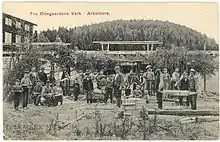 ![]() Miners at Ødegården Verk in the 1910s. Supervisor Erland Eide is in the boater hat, front center. | |