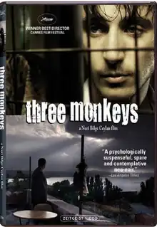 Three Monkeys (Turkish: Üç Maymun) is a 2008 Turkish film directed by Nuri Bilge Ceylan. The film was Turkey's official submission for the Academy Award for Best Foreign Language Film at the 81st Academy Awards, and it made the January short-list but was not nominated.[1]