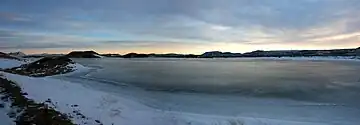 In 1877 he married Guðný Jakobína Pétursdóttir (1850–1939), the daughter of Pétur Jónsson,[4] a Reykjahlíð farmer. They had a son who died in infancy, followed by two daughters, Guðrún (1880–1943) and Védís (1885–1963).[4][5] By 1889 Jón and his family had acquired a cottage at Litluströnd, where they lived to the end of their days.