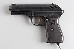 The vz. 27 is a Czechoslovak semi-automatic pistol, based on the pistole vz. 24, and chambered for 7.65 mm Browning/.32 ACP. It is often designated the CZ 27 after the naming scheme used by the Česká zbrojovka factory for post-World War II commercial products. However, it is correctly known as vz. 27, an abbreviation of the Czech "vzor 27", or "Model 27".