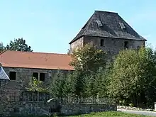 An significant landmark is the original medieval late Gothic fortress. A Renaissance reconstruction took place around 1600 and an early Baroque manor house was attached to the fortress in 1712. Today it is in poor condition and inaccessible.[2][6]