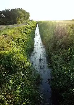 As the river grows, next to the villages of Višnjevac, Čantavir and Dušanovo, dams were constructed to regulate the flow, in both upper and lower course. In the lower course there are thick growths of reed on the banks of the river, which is at this point 2–4 m deep. After the villages of Tornjoš, Svetićevo and Obornjača, the river empties into the Tisa at the village of Bačko Petrovo Selo, at an altitude of 74 m (243 ft).