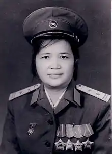 Đàm Thị Loan (1926–2010), born Đàm Thị Nết, was a lieutenant colonel in the People's Army of Vietnam. She was one of three female soldiers in the original Vietnam Armed Propaganda Unit for National Liberation in 1944 and was in the honor guard hoisting the flag of the new independent country in the Independence ceremony held at Ba Dinh Square on September 2, 1945. Her husband was general Hoàng Văn Thái, the first chief of staff of the Vietnam People's Army and the military leader of Viet Cong.