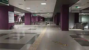 İkitelli Sanayi is an underground rapid transit interchange station on the M3 and M9 lines of the Istanbul Metro.[2] It is located in southern Başakşehir under Bedrettin Dalan Boulevard. It has an island platform serviced by two tracks. It opened on 14 June 2013 and became an interchange station with the M9 on 29 May 2021.[3]
