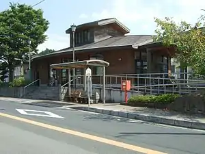 The station consists of two side platforms serving two tracks. It had originally been a side and an island platform but the centre track has been removed. A station building also doubles as a community hall. Access to the opposite side platform is by means of a footbridge. The station is unstaffed but a kan'i itaku agent sells some types of tickets from the ticket window in the station building.[2][3][4]