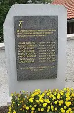 On 4 July 1945 a detachment of Yugoslav military police (KNOJ) abducted eight men from the village and murdered them in the forest between the Reka River and the hamlet of Razore in the village of Zagradišče. Their bodies were discovered buried in two pits in the woods. The villagers wanted to rebury them in the Šentpavel cemetery, but the bodies were taken away by the authorities and reburied anonymously,[7][8][9] presumably in a mass grave at Saint Ulrich's Church in the Ljubljana neighborhood of Dobrunje.[10][11][12] A memorial to the victims was erected in the village cemetery on 15 July 1990.
