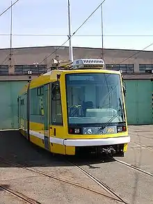 The Škoda 03 T (sold as Škoda Astra, later Škoda Anitra (Asynchronní nízkopodlažní tramvaj; Asynchronous Low-floor Tram)) is a three-section low-floor tram developed by Škoda Transportation and Inekon Group. The design was introduced in 1996,[1] and the first car was completed in 1998. The joint venture between Škoda and Inekon was dissolved in 2001, after which Škoda continued to sell the 03 T, while Inekon formed a new partnership with DPO (Dopravní podnik Ostrava, the city transport company of Ostrava),[2] known as DPO Inekon, and in 2002 began selling a nearly identical version of the Astra, under the name Trio.[3]