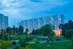 Population: (together with Jelitkowo, Wejhera i Tysiaclecia) 23,145 inhabitants on area 2.1 km2 (population density 10,923 inhabitants/km2).