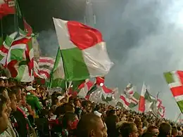 Throughout the years Żyleta became more than a section of the stadium, it has become a synonym of the devoted and affectionate support of the football team. Żyleta became famous for its spectacular visual displays, in particular card stunts, prepared by Legia supporters and presented during matches. The quality of support and of the visual displays was often said to be "unquestionably the best in Poland".[4] Thanks to this high reputation, Żyleta is regarded by the football supporters as an "exclusive" section of the stadium. Only the fans who obey the unofficial code of conduct (the key point of which is the non-stop support during the entire football match) are "privileged" to take a seat at Żyleta.[5] However, Żyleta has also attracted some negative attention. Especially during the mid-1990s, it had often been associated with football violence and fanaticism.[6]