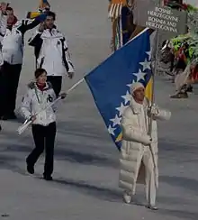 ![]() Žana Novaković as a flag bearer at 2010 Winter Olympics opening | |