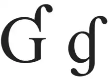 Doulos SIL glyphs for Majuscule and minuscule Ɠɠ.