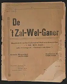 1. "'t Zal wel gaan : orgaan van het Taalminnend studentengenootschap 't Zal wel gaan". lib.ugent.be. Retrieved 2020-10-05.