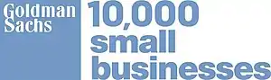 10,000 Small Businesses is a philanthropic initiative launched by Goldman Sachs and the Goldman Sachs Foundation in November 2009 that pledges $500 million in various aid to small businesses in the United States, United Kingdom, and France. The initiative aims to provide 10,000 small businesses with assistance – ranging from business and management education and mentoring to access to capital and business support services. Goldman Sachs' CEO Lloyd Blankfein, Berkshire Hathaway's Warren Buffett and Harvard Business School professor Michael Porter are the chairs of the program's advisory council.[1][2] The program was launched in the face of mounting criticism over Goldman Sachs' large bonus payouts after repaying (with interest) $10 billion in TARP funds it received from the U.S. Treasury.[3] According to the company, the small business initiative had been in development a year before the initial launch, and is modeled after its 10,000 Women Initiative, which has helped educate female entrepreneurs in 43 countries.[4] According to a January 2013 report by Babson College, 63.7% of program participants in the United States reported an increase in revenue and 44.8% added new jobs following graduation.[5]