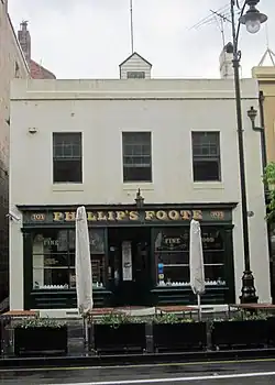 This Wikipedia article was originally based on Shop - Phillip's Foote Restaurant, entry number 1580 in the New South Wales State Heritage Register published by the State of New South Wales (Department of Planning and Environment) 2018 under CC-BY 4.0 licence, accessed on 14 October 2018.
