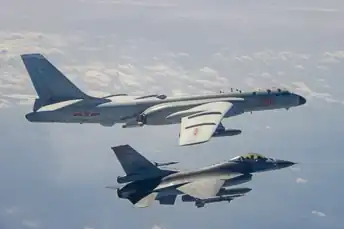 ROCAF F-16 shadows an H-6 of the 28th Regiment, 10th Bomber Division