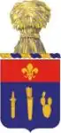 - Symbolism: The shield is blue for infantry, and the organization's service as infantry is indicated by the sheathed Roman sword, taken from the service medal of the War with Spain, for service in that war; the Indian quiver with arrows is symbolic of the Leach Lake Indian uprising, and the prickly pear cactus for service on the Mexican border. the chief is red for artillery and with the fleur‑de‑lis commemorates the organization's service as field artillery in France during World War I.[1]