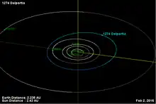 - 1 2 3 4 5 6 7 "JPL Small-Body Database Browser: 1274 Delportia (1932 WC)" (2017-07-05 last obs.). Jet Propulsion Laboratory. Retrieved 26 July 2017.