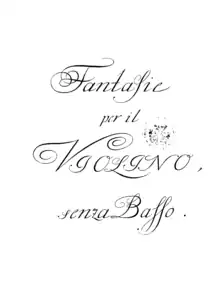 Georg Philipp Telemann's 12 fantaisies à traversière sans basse,[1] 12 Fantasias for Solo Flute, TWV 40:2–13, were published in Hamburg in 1732–33. An extant copy of the publication, conserved in Brussels, has a spurious title page reading Fantasie per il Violino senza Basso (Fantasias for Solo Violin).[1] The set is one of Telemann's collections of fantasias for unaccompanied instruments, the others being a set of thirty-six for harpsichord, also published in 1732–33, and two sets published in 1735: twelve for solo violin and twelve for viola da gamba.[2]