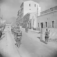 In mid-January 1945, the brigade and the rest of the division (except 139th Brigade) was transferred to Greece to fight in the Greek Civil War, returning to Italy in April but did not see action in the final offensive.[9] Throughout the campaign in Italy the 46th Division came under command of both U.S. Fifth Army and British Eighth Army.