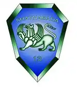 The 13th "Shavnabada" Light Infantry Battalion (Georgian: მე-13 "შავნაბადა"-ს მსუბუქი ქვეითი ბატალიონი) also known as the (official name) 13th Light Infantry Battalion (formerly the 113th mechanized infantry Battalion) is a military unit within the Georgian Armed Forces, so named for a type of cloak worn by medieval warriors. The most famous cloak is said to have worn by the patron saint of Georgia, Saint George, when he, according to a legend, appeared to lead Georgian army to a victory. The battalion's crest includes the word "Shavnabada" in Georgian, the battalion's symbol, the Griffin, and the number "13".