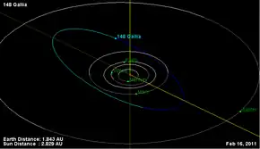 - 1 2 3 4 5 6 7 8 "JPL Small-Body Database Browser: 148 Gallia" (2017-10-28 last obs.). Jet Propulsion Laboratory. Retrieved 18 April 2018.