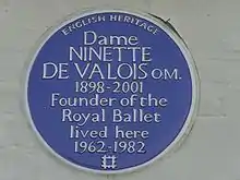 - ↑ McDonnell, Colleen (9 June 2006). "Plaque dedicated to dancing hero Dame Ninette". Richmond and Twickenham Times. Retrieved 22 April 2013.