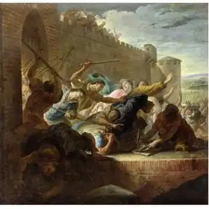 The Reformed Church members within the Hôtel de Ville continued to hold their position from Monday through Saturday.[23] All talk of truce had been rejected by the zealous minister Barrelles whom had turned the town hall into a Reformed temple.[4] Protestant sources describe him as "courageous and zealous, but very thoughtless and not always inspired by the spirit of God".[4] Even in the midst of the siege he had a vicious argument with a Protestant captain over ransoming captured notables back to the enemy. In the end he had the captain thrown into the Hôtel de Ville prison as well.[4] Still, with the city around him ablaze, even he could not long ignore the reality of their military situation.