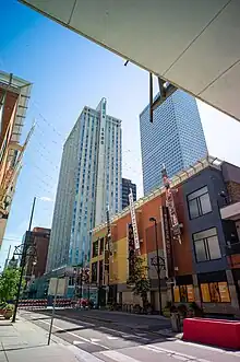 1600 Glenarm Place is a 384 ft (117m) tall skyscraper in Denver, Colorado. Originally constructed in 1967 as the Security Life Building - it has since been converted into a multi-tenant luxury apartment complex. On the top floor of this building many years ago; there was a restaurant called Top Of The Rockies. The exterior of the building used to hold a separate elevator shaft for a glass elevator which served the restaurant. The restaurant has been gone for many years. After operating for many years as an office building, in 2006, the Security Life Building underwent a major conversion to residential use. 1600 Glenarm Place is in the heart of Downtown Denver. The high-rise sits on the corner of 16th Street Mall and Glenarm Place, next to the Denver Pavilions.