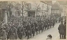 After the United States entered World War I it was drafted into federal service again on 5 August 1917, reorganized and redesignated on 16 August 1917 as the 168th Infantry and assigned to the 42nd Division.