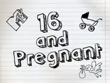 16 and Pregnant is an American reality television series that aired from June 11, 2009, to July 1, 2014, on the cable channel MTV.[1] It followed the stories of pregnant teenage girls in high school dealing with the hardships of teenage pregnancy. Each episode featured a different teenage girl, with the episode typically beginning when she is 4+1⁄2 – 8 months into her pregnancy. The episode typically ends when the baby is a few months old. The series is produced in a documentary format, with an animation on notebook paper showing highlights during each episode preceding the commercial breaks. 16 and Pregnant has spawned five spin-off series: Teen Mom, Teen Mom 2, Teen Mom 3, Teen Mom: Young and Pregnant, and 16 and Recovering, which premiered on September 1, 2020.[2]
