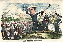 An in-between position is held by Juan Sisinio Perez Garzon who affirms "that it is not incompatible the existence of an organizational plot to destroy the ecclesiastical power and to overthrow the government, with the fact that this one overlaps and takes advantage of a situation of popular exasperation - by the cholera - to sow terror among the friars and to use a tactic of panic to justify the assault to the clerical possessions".[26] According to this historian, the way in which the liberal newspaper El Eco del Comercio reported the news of the riot would constitute an indication of who could have been behind the events when it transformed the victims into "enemies of the Motherland", the lynching of the religious was reduced to the concept of "some misfortunes" and affirmed that in the assaults "it is said that some evidence was discovered that gave foundation to the voices that have run in the previous days about their plan for the poisoning of the waters. Everything can be believed of the perversity of the enemies of the Motherland, and we have always foreseen that they would take advantage of the present moments to increase the conflict in which we are..."[27]