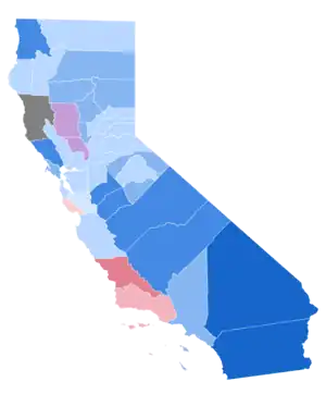 This would prove the last occasion the Democratic Party carried Alameda County until Franklin Delano Roosevelt in 1932, the last in which the Democrats carried Santa Cruz County and Placer County until Woodrow Wilson in 1916, and the last when Napa, Solano[lower-alpha 1] and Marin Counties voted Democratic until Wilson in 1912.[1] California's electoral votes would not be again carried by the Democratic Party until 1880.